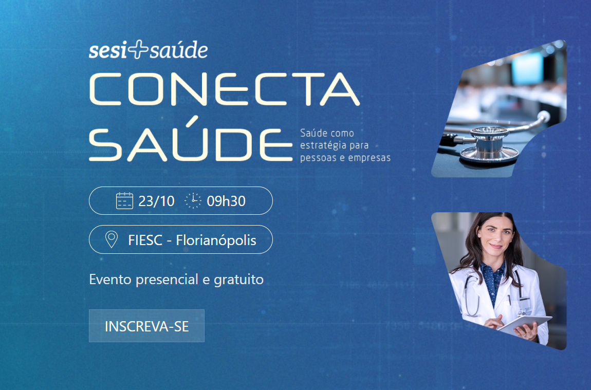 Florianópolis, 14.10.2025 – O SESI/SC abriu inscrições para o Conecta Saúde, evento gratuito sobre inovação, gestão inteligente e práticas que fortalecem o bem-estar e os resultados nas empresas.