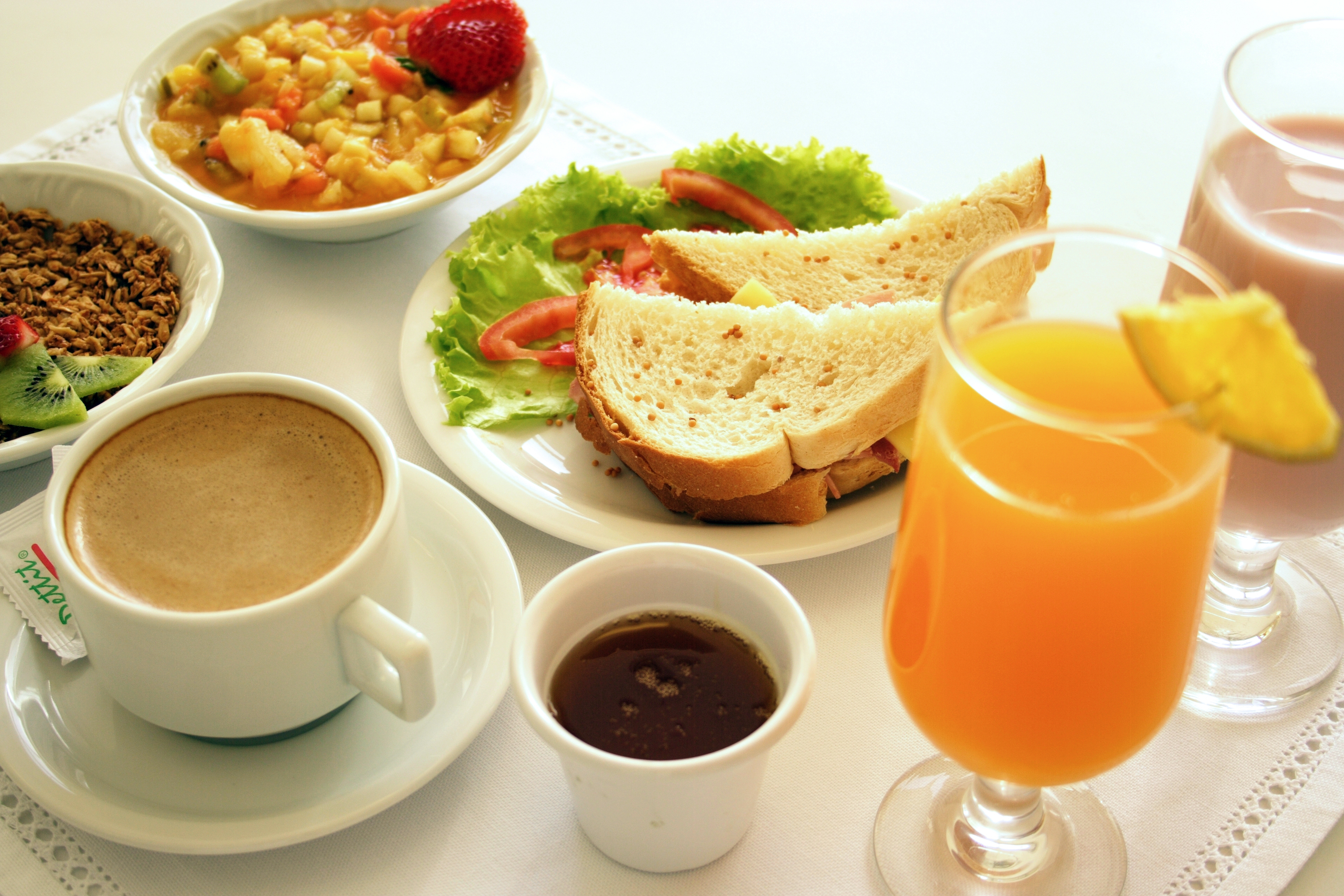 Alimentos como pães e biscoitos integrais, cereais sem açúcar, frutas, leite, iogurte e queijos magros são boas opções de alimentos saudáveis para o café da manhã. Refeições que possuem açúcares, como bolos e tortas, devem ser evitadas, já que são pobres em vitaminas e minerais.