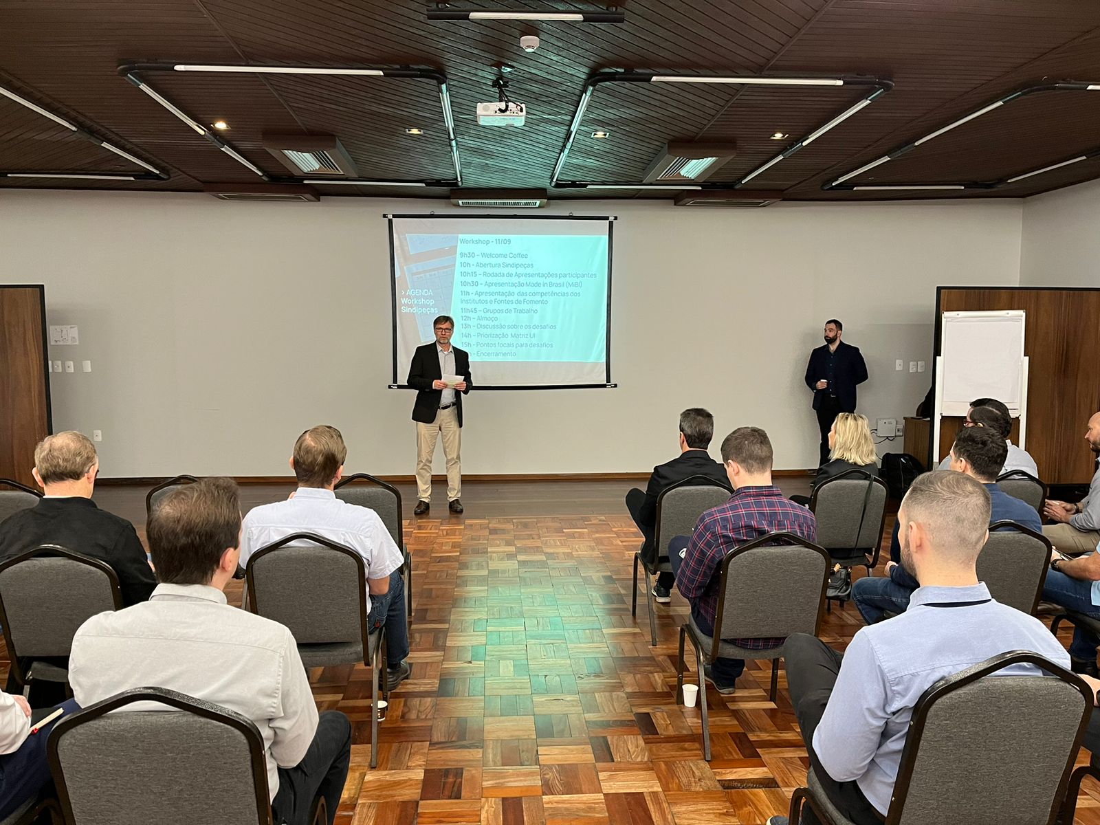 O evento contou com mais de 20 executivos e especialistas de dez empresas do setor. O objetivo foi a idealização de potenciais projetos, que serão executados com recursos do Programa 2030. A primeira ação foi o levantamento prévio dos interesses das empresas, possibilitando aos institutos SENAI entender os desafios para a elaboração e submissão de projetos no escopo do Rota 2030. Entre os encaminhamentos definidos na reunião estão a atuação em cinco temas: nacionalização de produtos, melhoria de processos, análise de layout, fluxos e flexibilidade, ampliação do uso da inteligência de dados para a tomada de decisão e a elevação da competitividade das empresas.