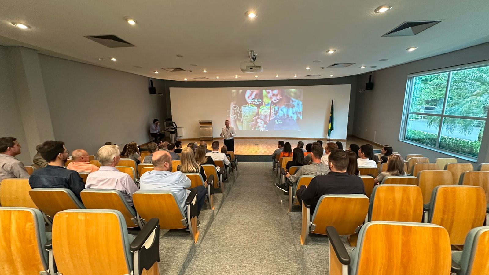 A presidente da Câmara de Desenvolvimento da Indústria de Alimentos e Bebidas da FIESC, Micheli Poli Silva, e o presidente da Câmara de Desenvolvimento da Micro e Pequena Indústria, Célio Bayer, destacaram a importância de os empresários conhecerem as possibilidades que a Federação coloca ao alcance da indústria para que potencializem seus negócios.