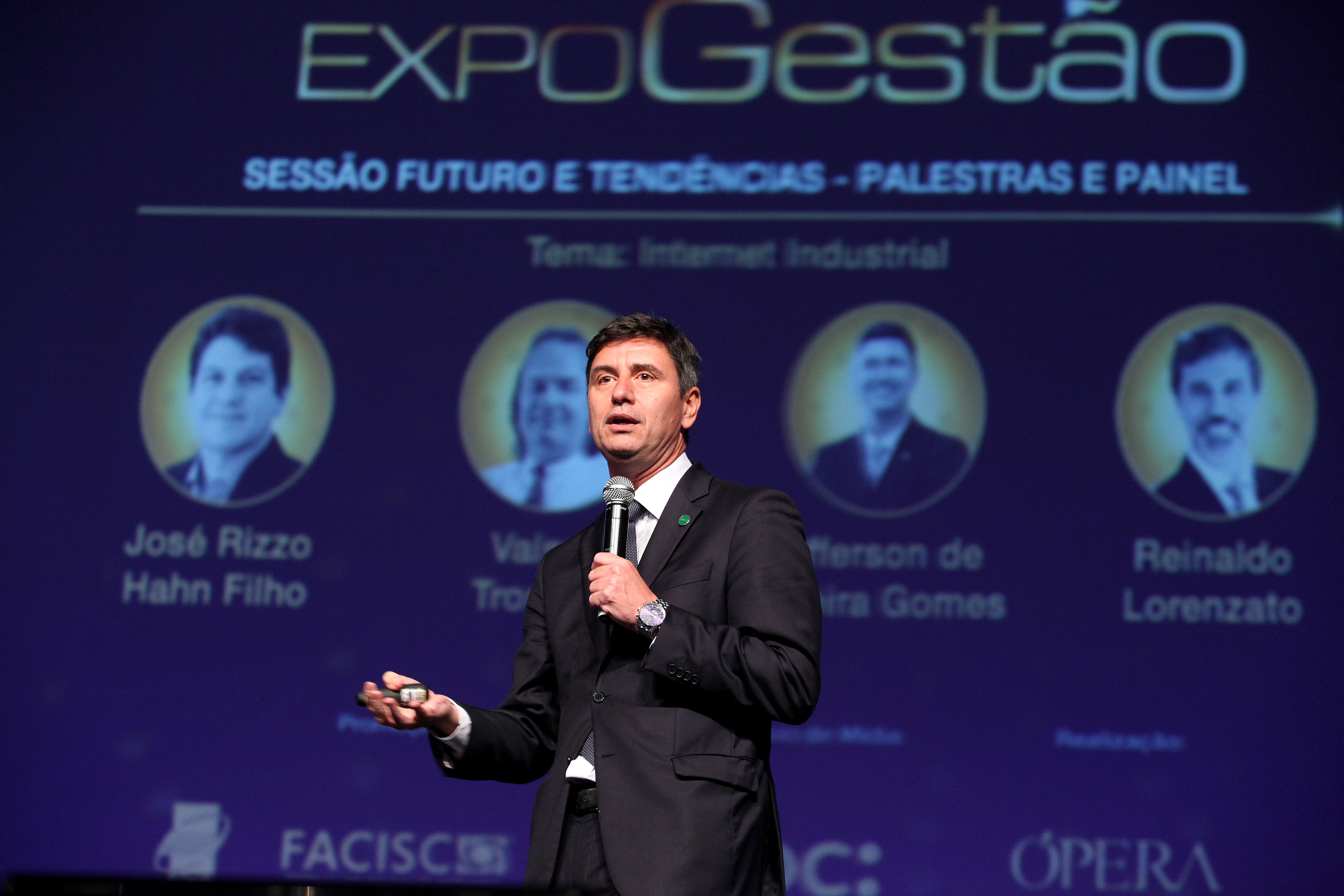 Joinville, 06.5.2016 – Até 2020, mais de 50 bilhões de objetos – ou sete vezes a população mundial – estarão interconectados, promovendo negócios estimados em 32 trilhões de dólares. Mais relevante que o volume de recursos movimentados, entretanto, é que esta hiperconectividade está modificando a sociedade e a economia, permitindo rapidez e eficiência na tomada de decisões. Decorrente da redução dos custos de processamento, armazenamento e transmissão de dados, o fenômeno ganha diversas denominações, incluindo Internet das Coisas, Internet Industrial ou Indústria 4.0. O tema foi debatido na manhã desta sexta-feira (6) na Expogestão 2016, em painel que contou com a participação de Jefferson de Oliveira Gomes, diretor regional do SENAI/SC, entidade da FIESC.