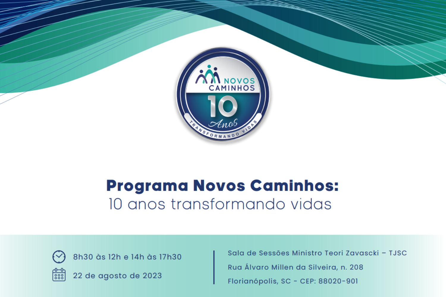 Florianópolis, 15.08.2023 - Para comemorar o marco de 13 mil matrículas nos cursos ofertados às crianças e aos adolescentes, bem como a inclusão de mil jovens no mercado de trabalho, nos últimos 10 anos do programa Novos Caminhos, o Tribunal de Justiça de Santa Catarina (TJSC) promoverá uma série de palestras no próximo dia 22 de agosto. O evento acontecerá das 8h30 às 12h e das 14h às 17h30, no Auditório Pleno do TJSC, em Florianópolis. A solenidade é aberta à sociedade em geral e as inscrições foram prorrogadas até esta quarta-feira, dia 16 agosto.