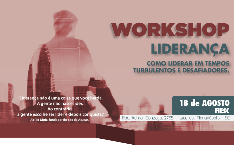 Florianópolis, 29.7.2016 – Estão abertas as inscrições para o workshop “como liderar em tempos turbulentos e desafiadores”, iniciativa que o Instituto Euvaldo Lodi (IEL/SC), entidade da FIESC, promove no dia 18 de agosto, às 15 horas, em Florianópolis. O evento será na sede da FIESC, na Rodovia Admar Gonzaga, 2.765, bairro Itacorubi. As inscrições são gratuitas e devem ser feitas aqui.